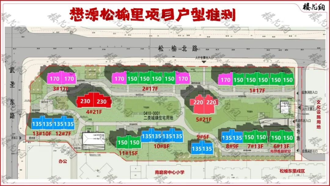 松榆里项目13栋住宅楼,住宅建面8.03万㎡,共499户,户均建面161.85㎡。