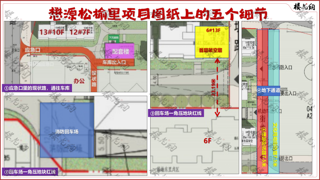 4、在松榆里地块西南角,懋源似乎吃了个暗亏:红线内,有一个应急口,是条现状路,宽5米,通向项目西南角车库的进出口。