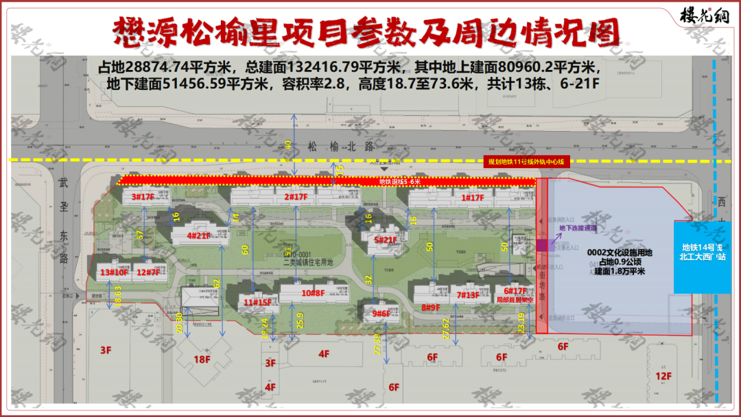 通过这条通道,与东边0002文化设施用地相连——规划建面1.8平米,它则与地铁14号线北工大西门站打通,进而间接实现了项目与地铁的连通。