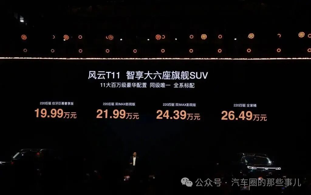 10月13日,奇瑞风云T11正式开启预售。新车共推出 4 款车型,预售价为 19.99-26.49 万元。据了解,新车采用全新的外观设计语言,定位六座大型 SUV,配备车顶激光雷达以及猎鹰驾驶辅助系统,动力上搭载 1.5T 增程动力系统。官方表示,新车将在 10 月底上市。