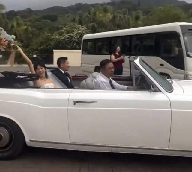 仪式完成后,嘉宾们纷纷向新人撒纸碎以示祝福,郑丹瑞亦参与其中,象征着父亲对女儿婚姻的正式认可。随后,新人登上劳斯莱斯花车,象征着美满婚姻的幸福启航。