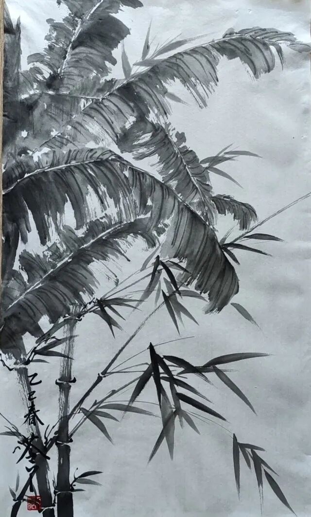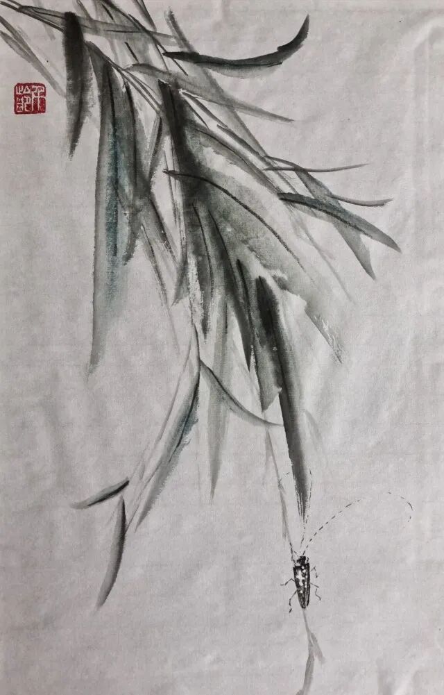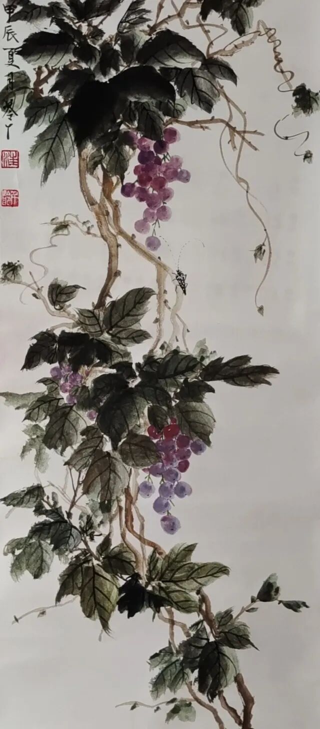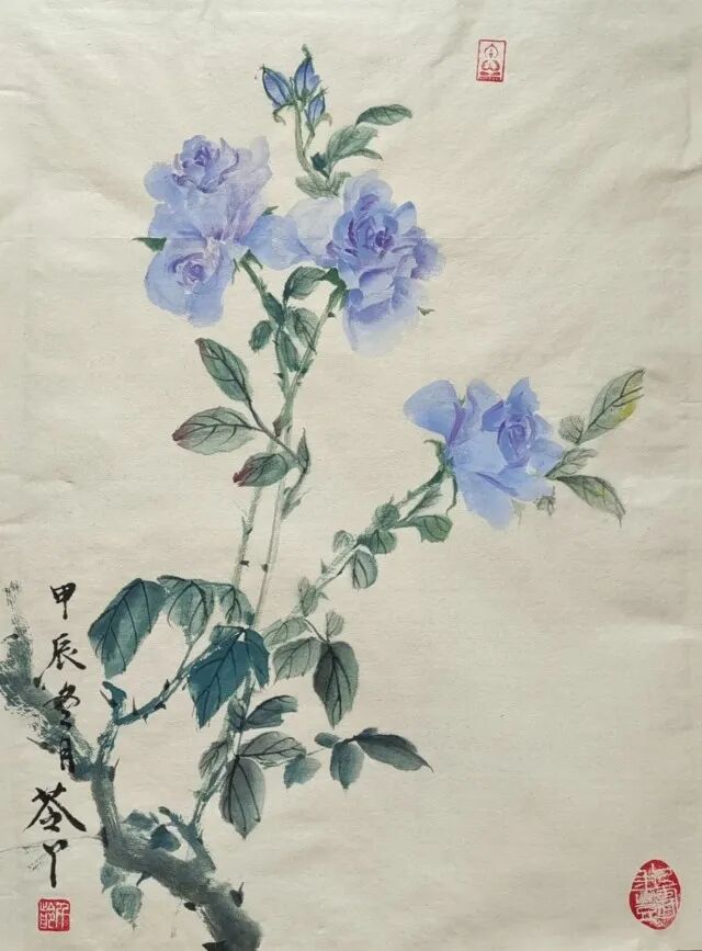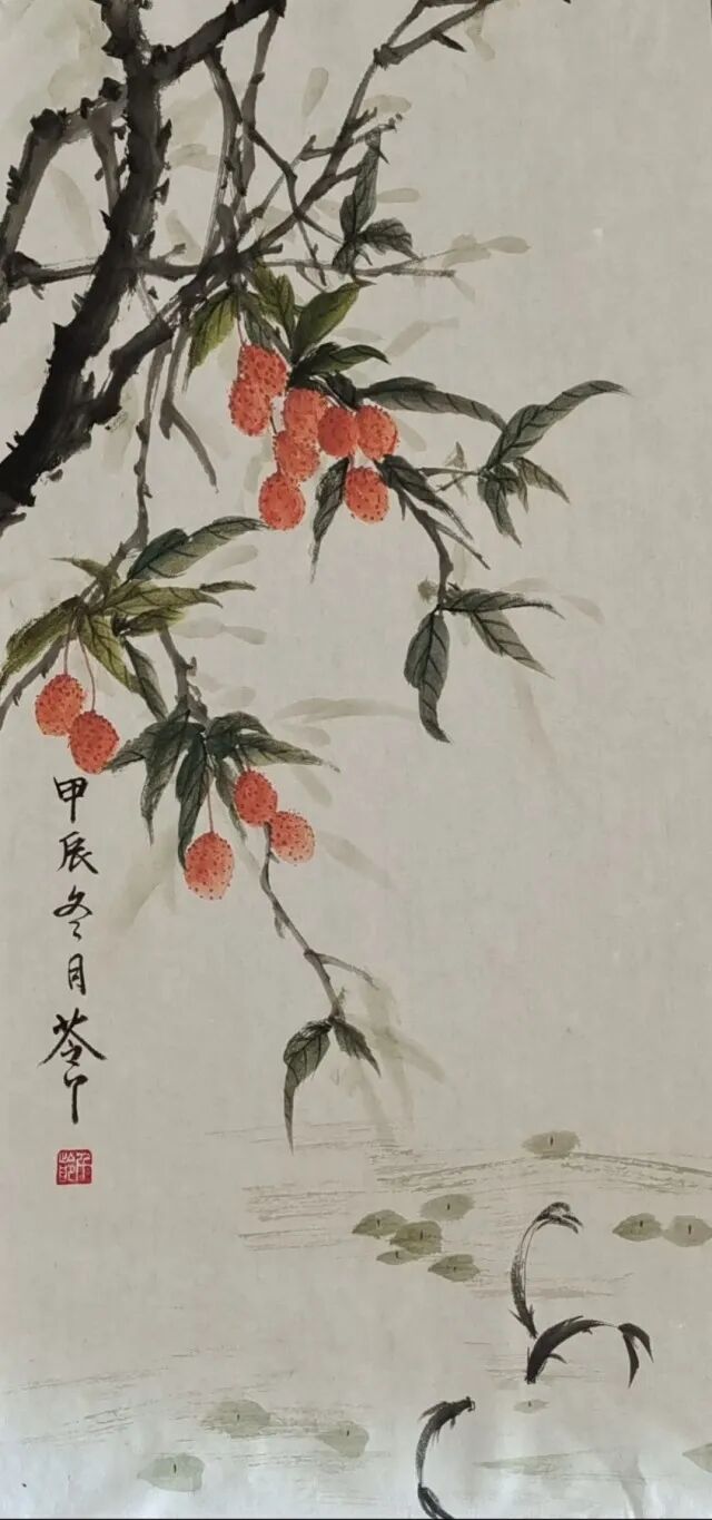 汪千龄的绘画最动人处,在于其构建的“可居可游”的精神空间。她将宋人花鸟的“折枝构图”与文人画的“留白哲学”相结合,通过疏密有致的枝叶安排,形成“密不透风,疏可走马”的视觉节奏。这种构图智慧,既源于对郭熙“三远法”的继承,又融入了现代平面构成理念。