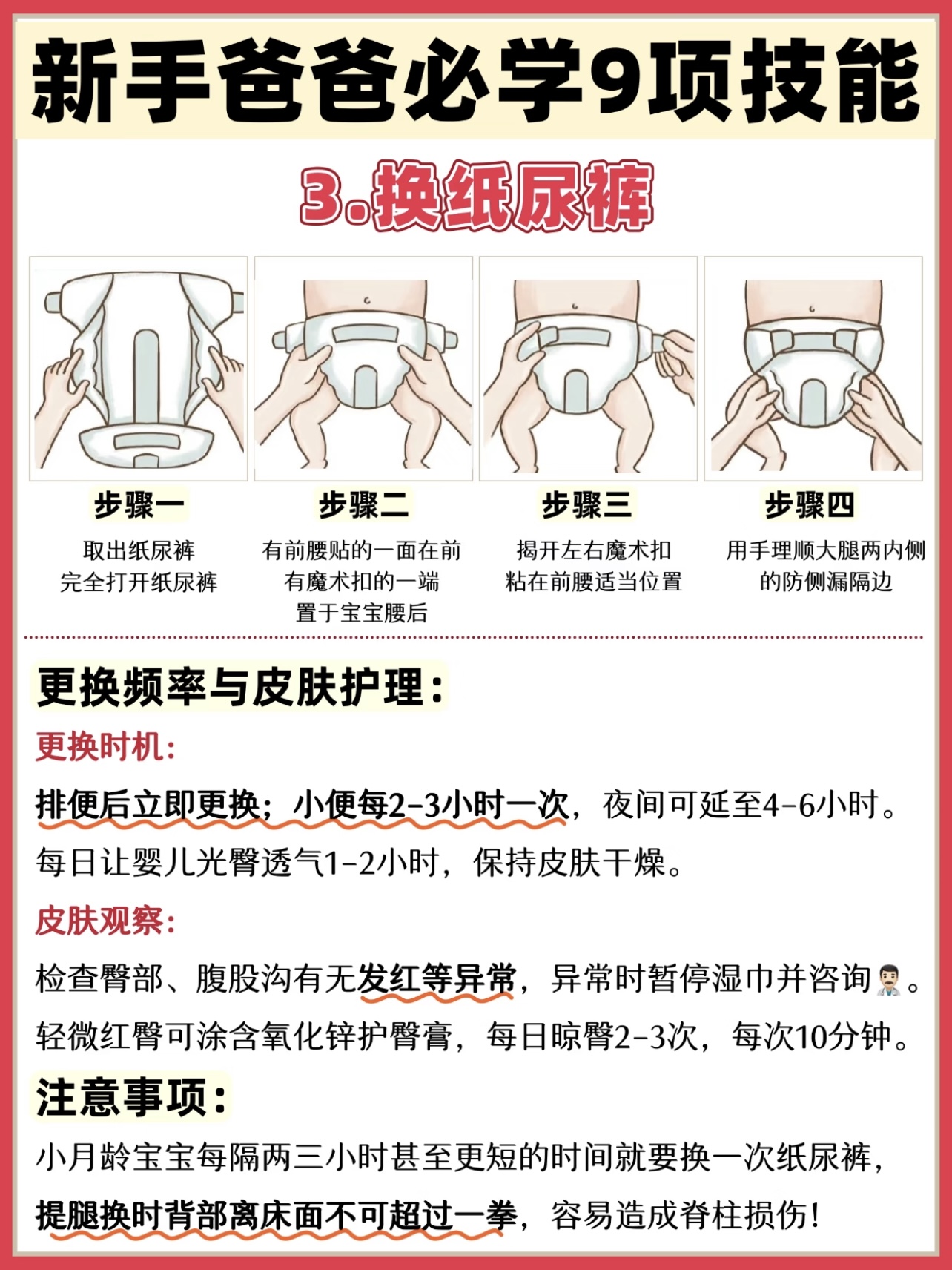 换尿布:别小看这活儿,刚出生的宝宝皮肤嫩得像豆腐,尿布换不好,小屁屁分分钟红给你看。记住口诀:一铺二抬三擦四包。先铺好干净的尿布,轻轻抬起宝宝的小腿,用湿巾或温水擦干净,最后把尿布包紧,注意别勒到宝宝的小肚皮。刚开始可能手忙脚乱,多练几次,你也能成为“换尿布小能手”。