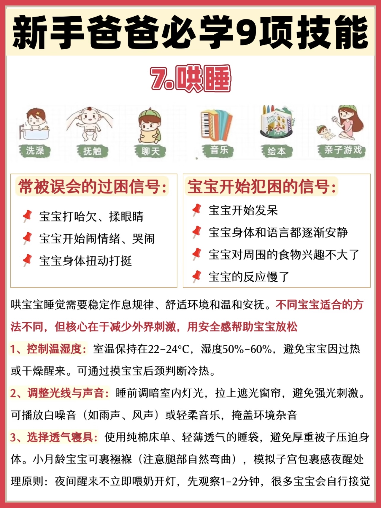 哄睡:宝宝哭闹不睡,爸爸们别急,试试“摇篮曲+轻拍”组合拳。把宝宝放在床上,轻轻哼唱他喜欢的儿歌,同时用手轻拍他的背或屁股,节奏要慢而稳。很多宝宝听着听着就睡着了,比妈妈哄睡还管用。