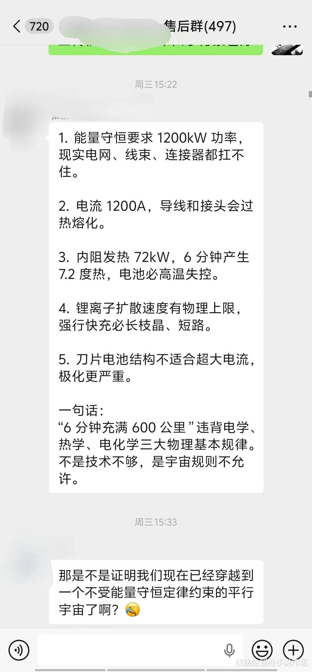 前两天,我在某个微信群分享比亚迪二代刀片电池和最新闪充技术的信息,我说比亚迪重新定义电池安全标杆,有位群友表示不服气,认为这是不可能的,是在忽悠人,因为这违背了物理规律。这位群友说他也是学物理的,他列出的理由如下(我是一字不漏复制了的):