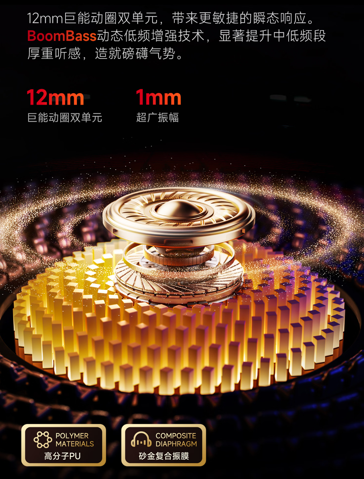 l旗舰级声学配置:搭载12mm巨能动圈双单元、Hi-Fi 5 DSP芯片与LHDC 5.0解码,支持24bit/192kHz无损音质及1000kbps传输码率,通过Hi-Res金标认证。结合360°全景音效、AI动态头部追踪空间音频技术及定向传音架构,破解开放式耳机“音质差、漏音严重”的行业魔咒。
