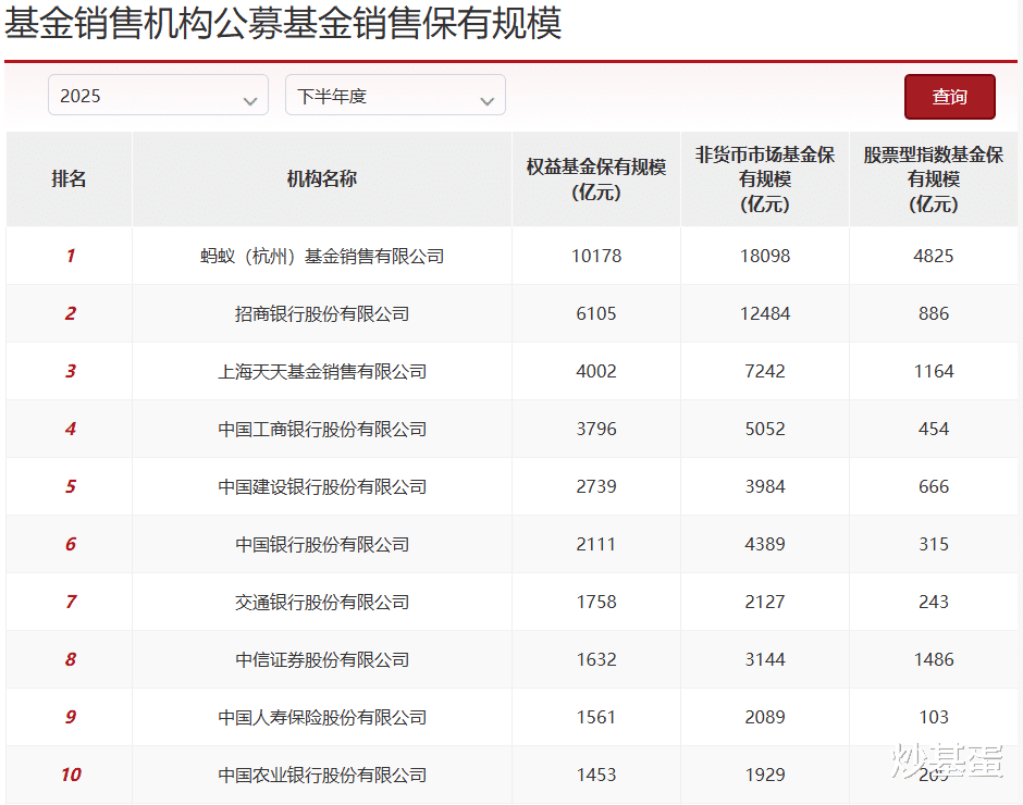 协会每隔一段时间都会公布基金代销数据,最新公募的是2025年下半年的,主要公布的数据是:①权益基金保有规模、②非货币基金保有规模、③股票型指数基金保有规模。