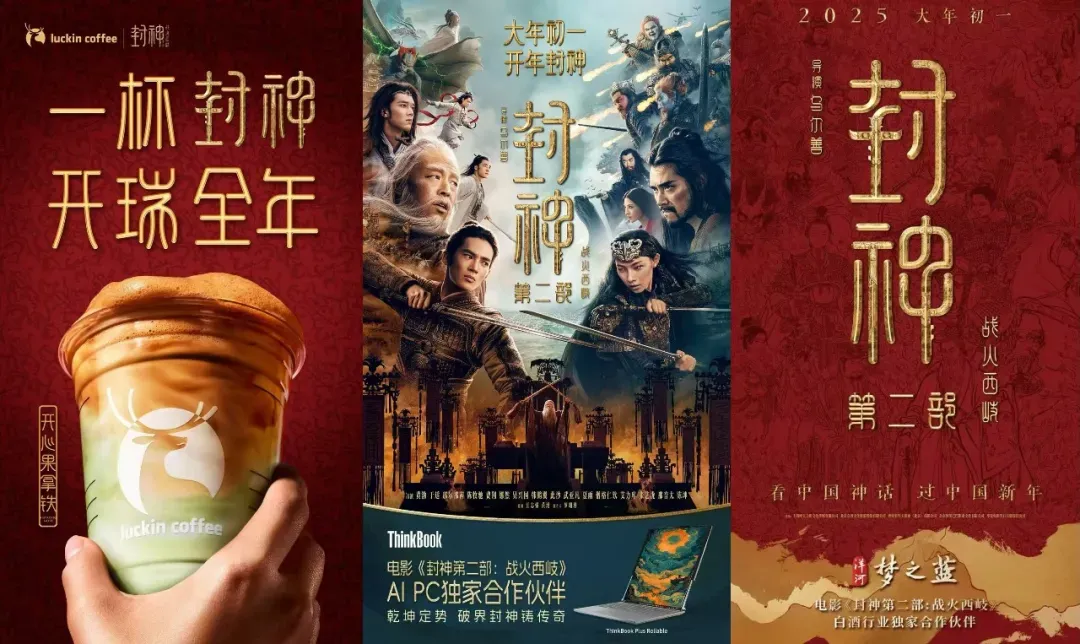 电影品牌续航,能帮助观众根据过往系列品质判断,由情感积淀、审美偏好换来习惯性消费。由IP衍生带来的价值全面释放更能为电影带来难以估量的“非票”收入。《封神第二部:战火西岐》IP撬动各类消费,都是电影品牌价值的彰显。瑞幸X封神“一杯封神 开瑞全年”、ThinkBook“乾坤定势 破界封神铸传奇”、洋河梦之蓝“看中国神话 过中国新年”在一声声吉祥祝福中,传递中国神话想象力。从银幕热度到消费热度,从内容价值到商业价值,影片成功实现IP破圈,将电影影响力转化为快消、文创等领域的实际营收,展现出电影IP的强大商业变现能力。中国社科院社会学所消费与文化社会学研究室主任、研究员朱迪表示,当前的电影产业正在构建新型文化业态和多元消费生态,体现了文化新质生产力的重要作用,反映了我国文化经济的巨大增长空间,带来新的经济增长点。
