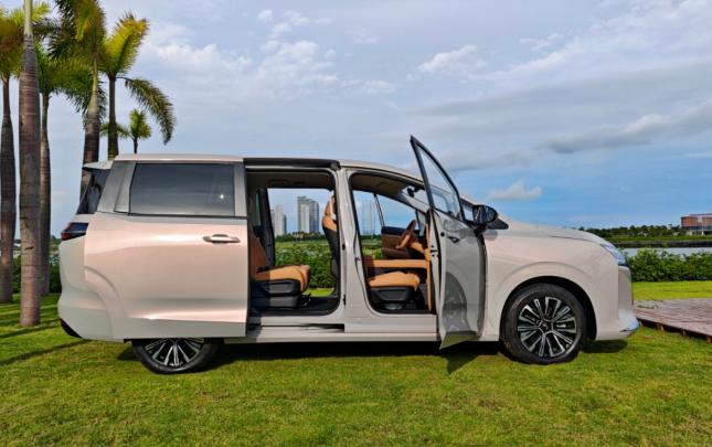 外观方面,这台车走的是稳重大气的路线,没有花里胡哨的设计,特别符合家用MPV的定位。前脸是“大嘴”式中网,搭配LED远近光双透镜灯组,点亮后穿透力很强,过弯还有转向辅助灯,照明范围更宽,安全性也提升了不少 。车漆用的是巴斯夫2K清漆+8涂层工艺,光泽度很好,平时小剐小蹭也不容易留痕,打理起来很省心。车身线条干净利落,方方正正的造型不仅好看,还能优化利用内部空间。侧滑门是全系标配,虽然这款豪华型是手动版本,但推拉起来很轻盈顺滑,不用使劲猛甩,轻轻一拉就能借助滑轨助力自动闭合,家理老人和孩子都能轻松操作。如果选装电动侧滑门也很划算,平时带老人孩子上下车更方便,春节走亲戚也更有面子。车尾的设计简洁大方,LED后尾灯和高位刹车灯辨识度很高,后保险杠下方的黑色防刮护板很实用,装卸行李的时候不用担心刮蹭到车漆,对于家庭用车来说还是比较实用的。