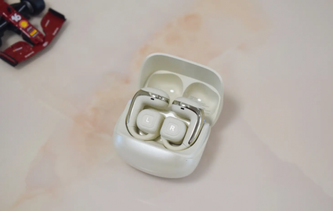这款耳机耳挂采用柔韧钛丝和亲肤硅胶拼接设计,贴合耳廓弧度,佩戴稳固不打滑,即使是跑步、跳绳等中高强度运动也不用担心脱落,但单耳重量8.9g,虽然不算重,长时间佩戴眼镜的用户,耳挂处可能会有轻微压痕。