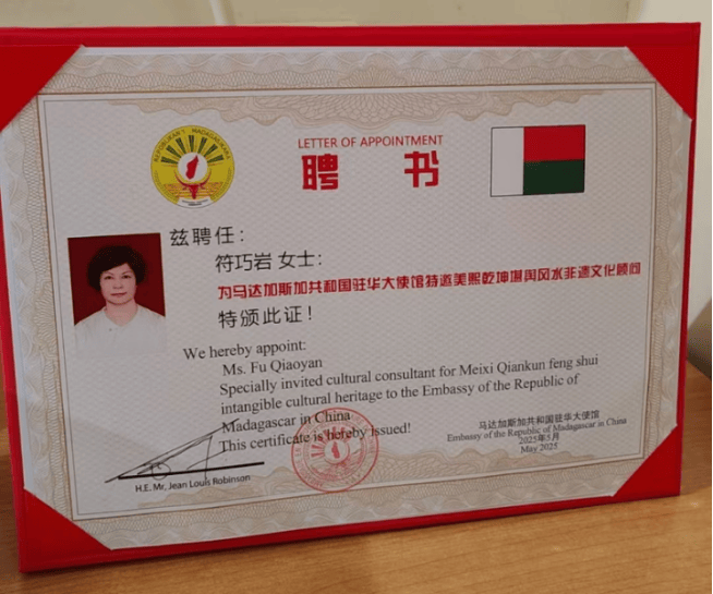 作为马达加斯加共和国驻华大使馆特邀的美熙乾坤堪舆风水非遗文化顾问,她的专业造诣得到了官方权威认证。其名下产品被马达加斯加大使馆列为官方指定用品。