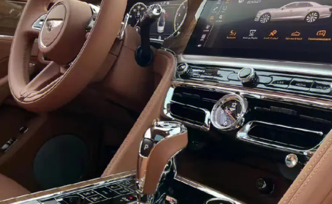 仪表盘上配备了一块大屏幕,用于显示驾驶信息、导航和娱乐系统。中控台上的触摸屏集成了多种功能,包括音响控制、车辆设置和智能互联功能。整体来说,飞驰的内饰设计既充满现代感又充满经典气息,营造出一个令人陶醉的驾驶舱。