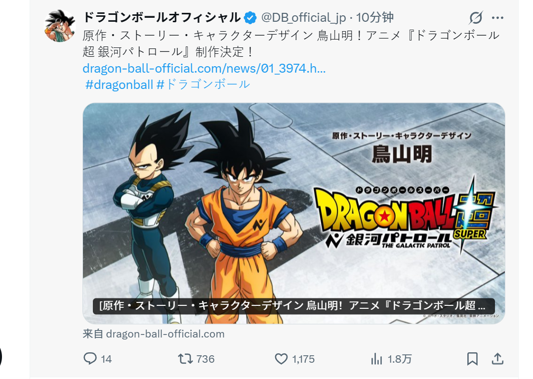 而现在,在「龙珠元气祭典」进行的时候,《龙珠》官推正式发文,龙珠超银河巡警篇内容正式立项!