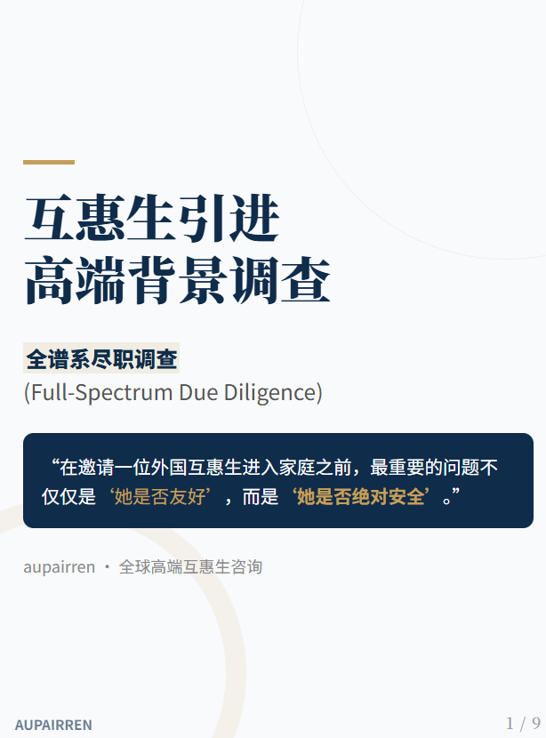 在邀请一位外国互惠生(Au Pair)进入家庭,与您的子女朝夕相处之前,最重要的问题不仅仅是“她是否友好”,而是“她是否绝对安全”。