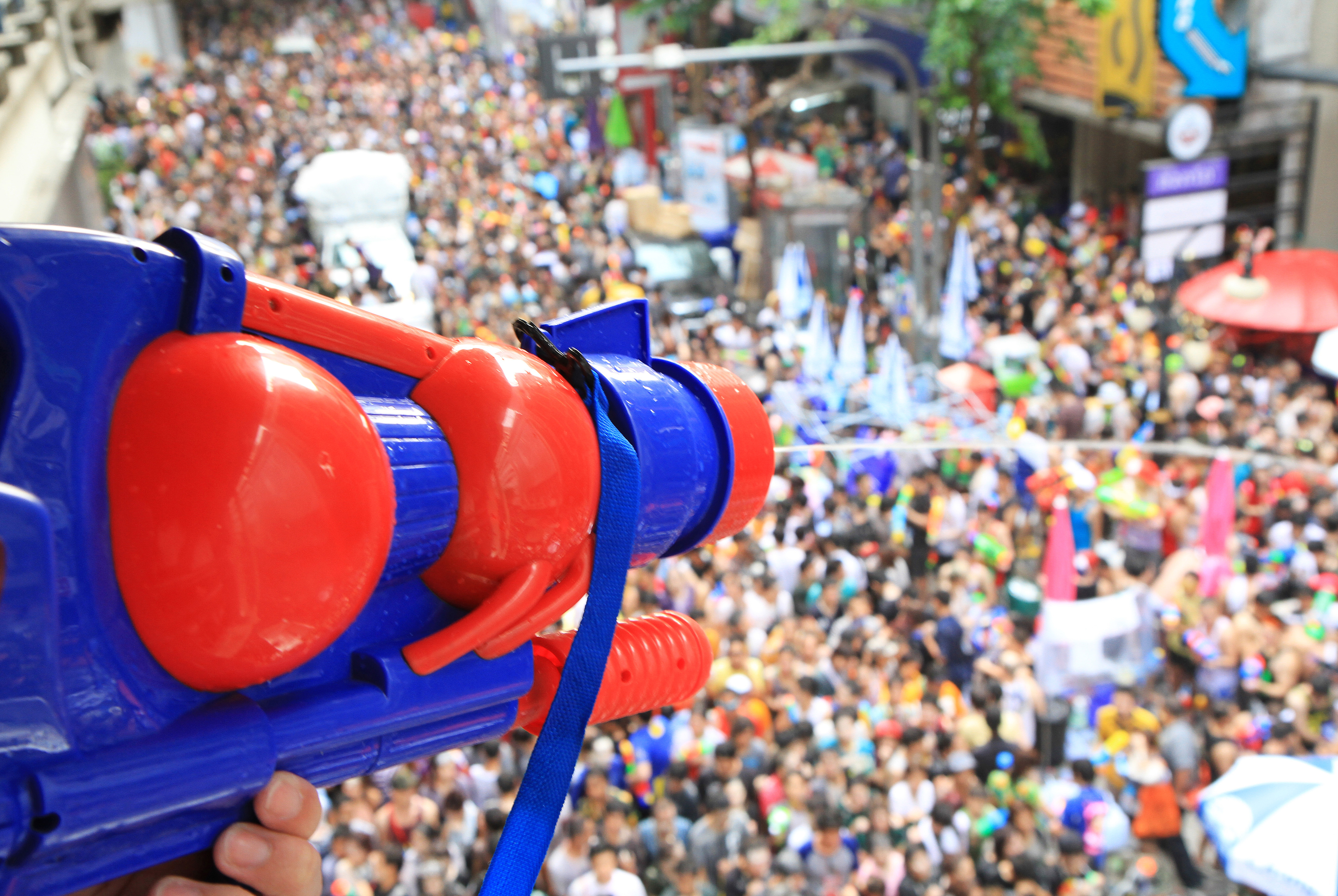 考山路:国际背包客的天堂,这里的泼水气氛比较嗨,水枪、水桶、水管齐上阵,沿街酒吧音乐震天,从白天嗨到深夜。是隆路堪称规模蕞大的纯水战区,整条街道被狂欢人群占据,路边设有大量补水点,让你可以持续作战。