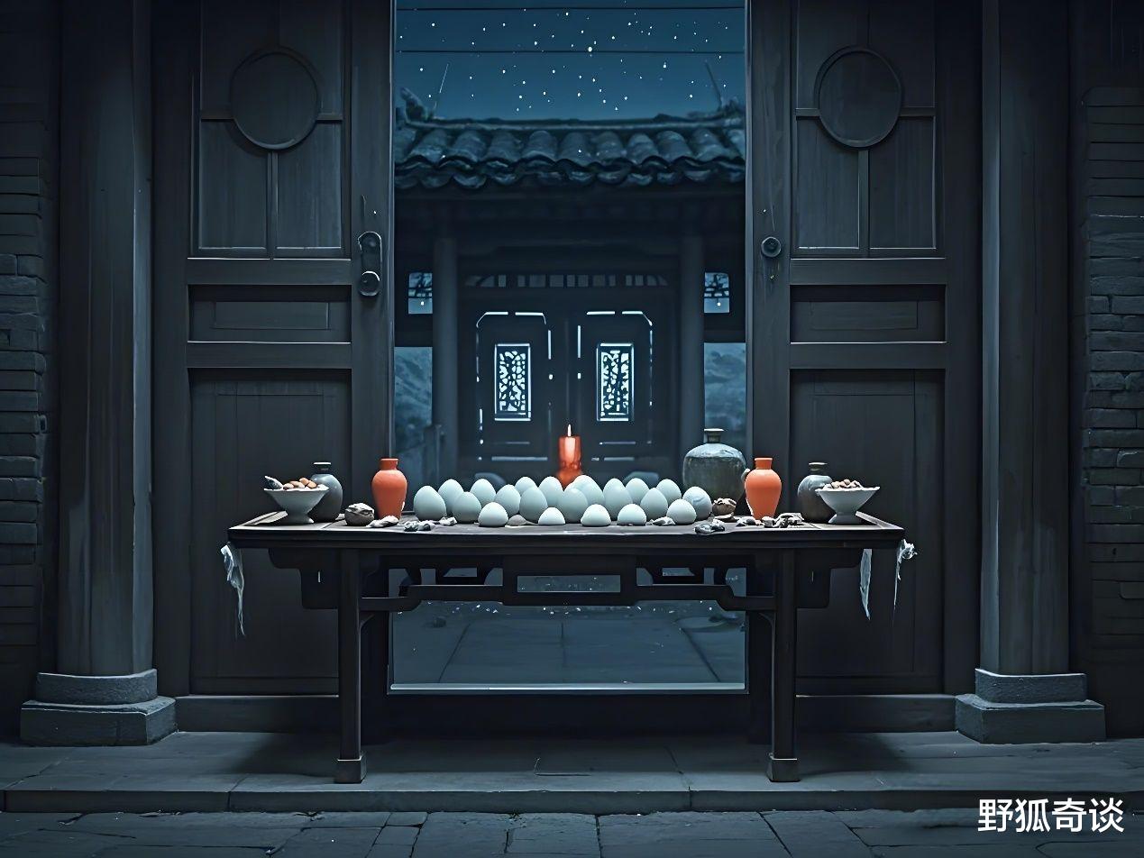 就在这时,道士又让小徒弟去到门外,摆放上一张几案,在上面放置了数百枚鸡蛋和数罂白酒。