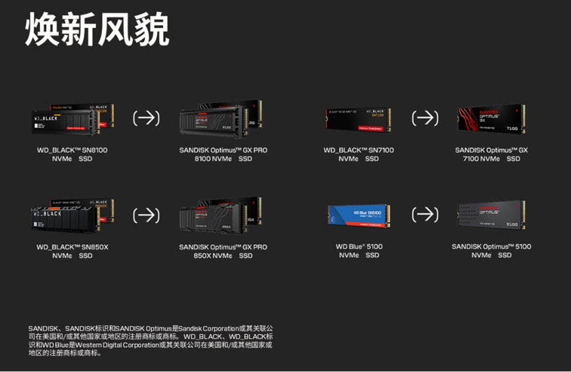 不仅如此,SANDISK Optimus™品牌也与闪迪旗下的高性能存储卡、移动固态硬盘以及桌面存储设备形成协同效应。这种多形态产品布局,既可满足专业创作者、发烧级玩家对高速存储介质的需求,也为普通消费者提供了从摄影、便携设备的完整存储解决方案。需要说明的是,采用全新SANDISK Optimus™品牌标识的闪迪SSD产品预计将于2026年上半年完成上架。