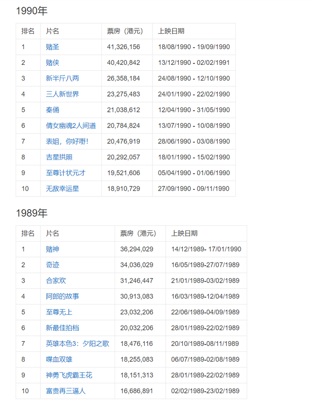 《赌圣》上映于1990年8月18日。在这之前的前一年的12月14日,由王晶执导、周润发主演的《赌神》上映,一举拿下了1989年的年度票房冠军,票收3629.4万。