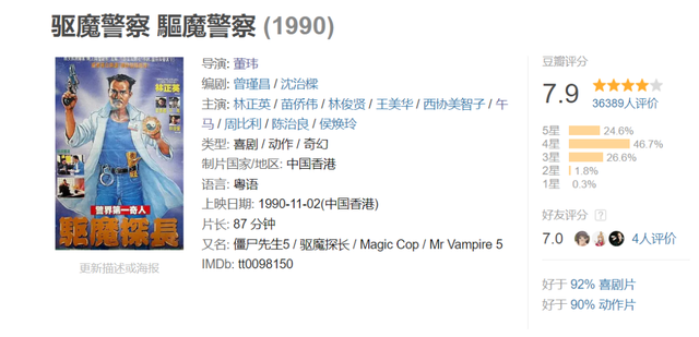 这部片也值得一说。因为,嘉禾原本计划找林正英,合作一部新的僵尸片。英叔是僵尸片正宗,找他就对了。可是,双方对创作产生了分歧。林正英想要与现代警匪片相结合,嘉禾觉得不靠谱。最终林正英愤而出走,自己拍了部《驱魔警察》,邀请董玮执导。