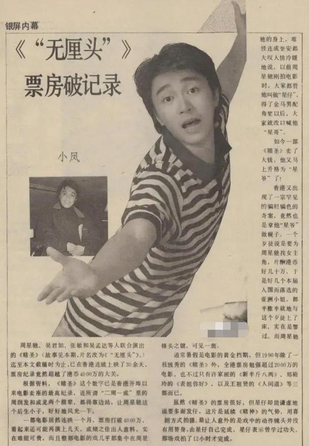 周星驰直到1990年的《赌圣》上映完成,才真正走上了爆火之路。