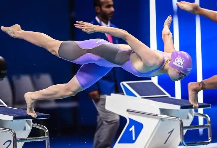 视线转到女运动员,香港选手何诗蓓在女子100米自由泳决赛中获得冠军,女子400米个人混合泳决赛中于子迪获得冠军。