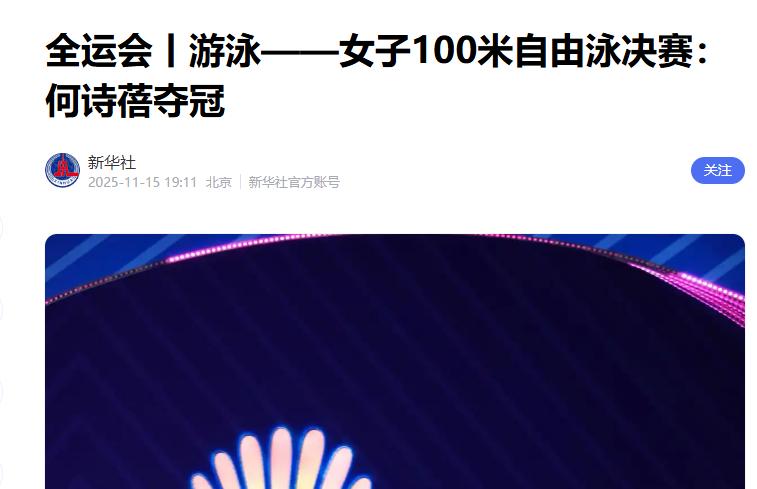 全运会丨游泳——女子100米自由泳决赛:何诗蓓夺新华社 2025-11-15 19:11北京新华社官方账号