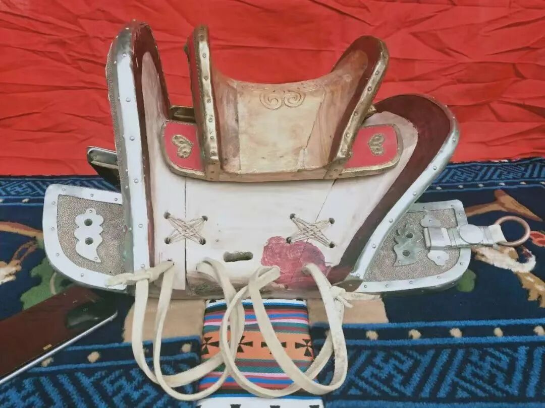 在甘金明的记忆里,上世纪八九十年代的草原上,马鞍是“硬通货”—— 牧民们比谁家的马鞍款式更讲究,各种款式也各有各的用处。那时他的作坊里,常有牧民揣着酥油、青稞来排队,就为等一副合心意的马鞍。
