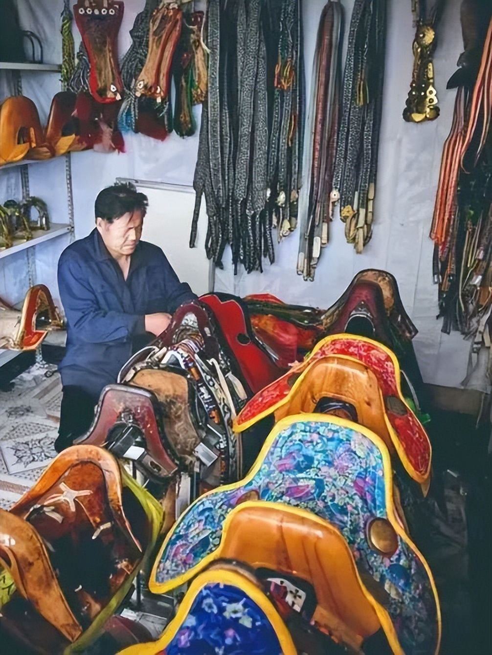 40年过去,甘金明还记得第一次独立完成马鞍时的场景:那是一副“小三元式”马鞍,他熬了三个通宵,从选料到组装反复调整,直到骑手试坐时说“稳当,像长在马背上一样”,他才松了口气。“现在闭着眼都能摸出鞍板的弧度对不对,”甘金明笑着说,“这手艺,练的就是个心手合一。”