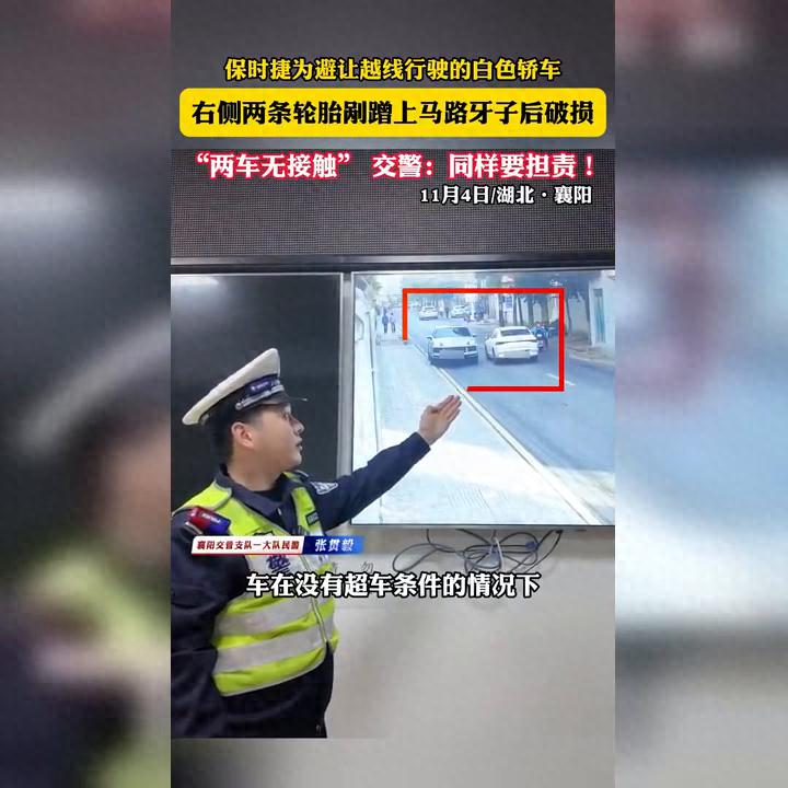 保时捷紧急避让白车越线,轮胎剐蹭马路牙子致损!谁来担责呢?