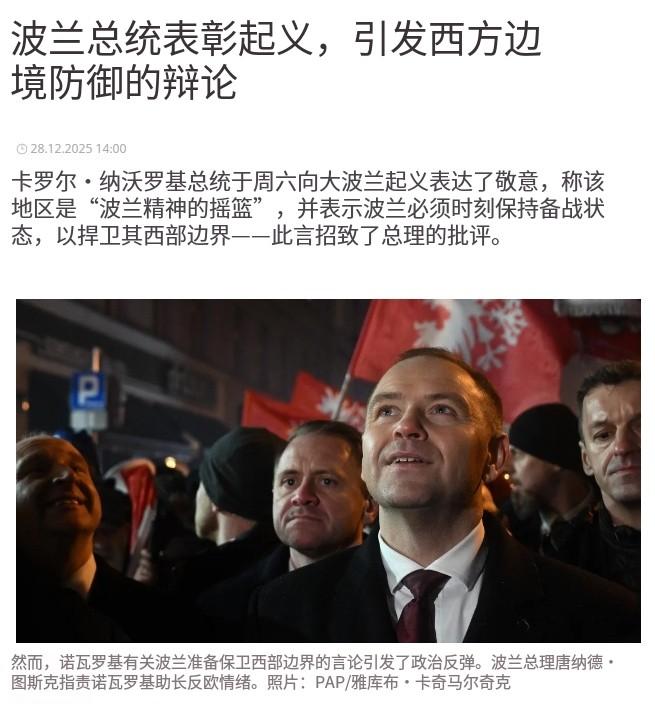 波兰总统一句话,舆论彻底在欧洲“炸锅”,外媒28日报道:波兰总统纳夫罗茨基在纪念大波兰起义的讲话上,突然抛出一句“必须时刻准备好保卫西部边境”。