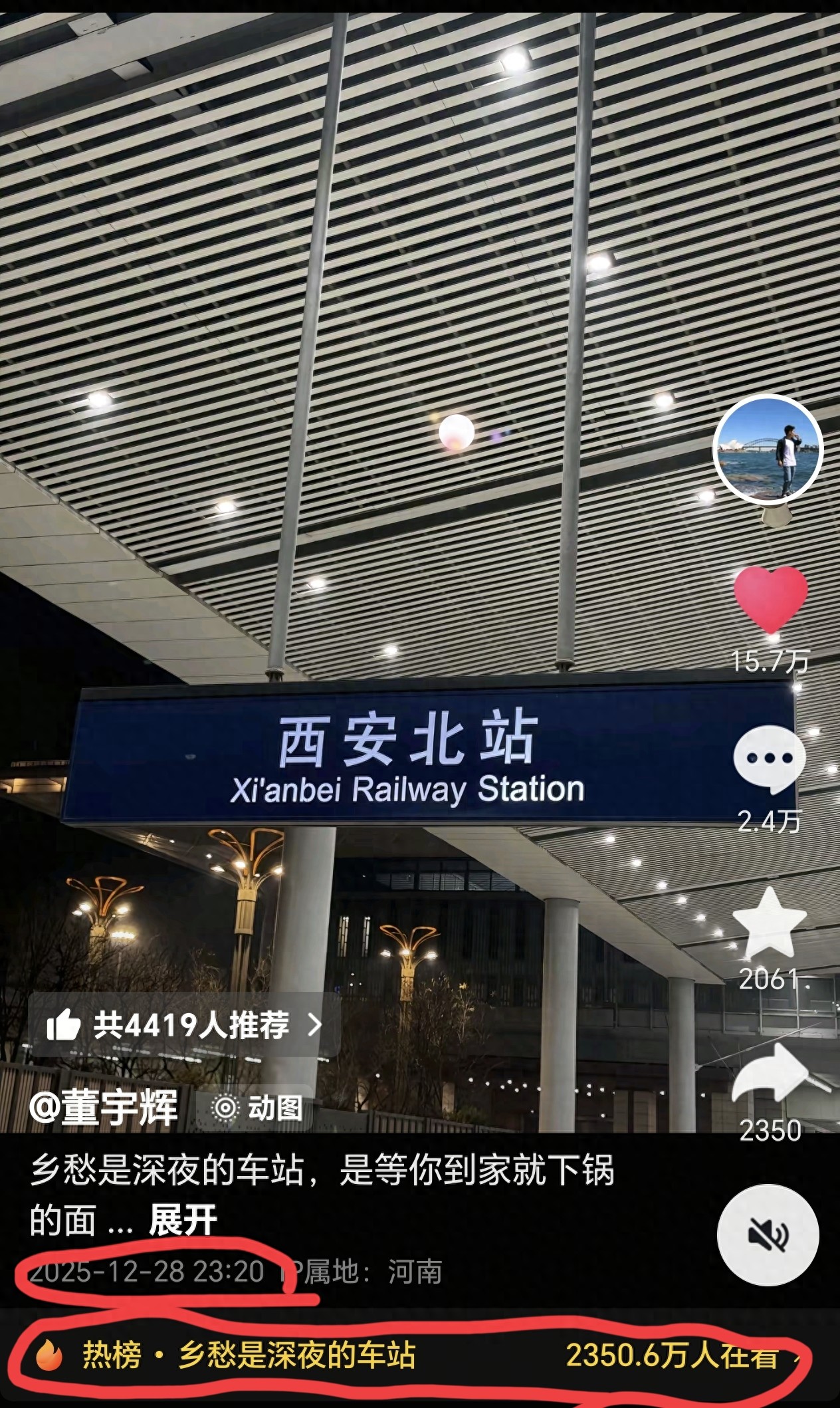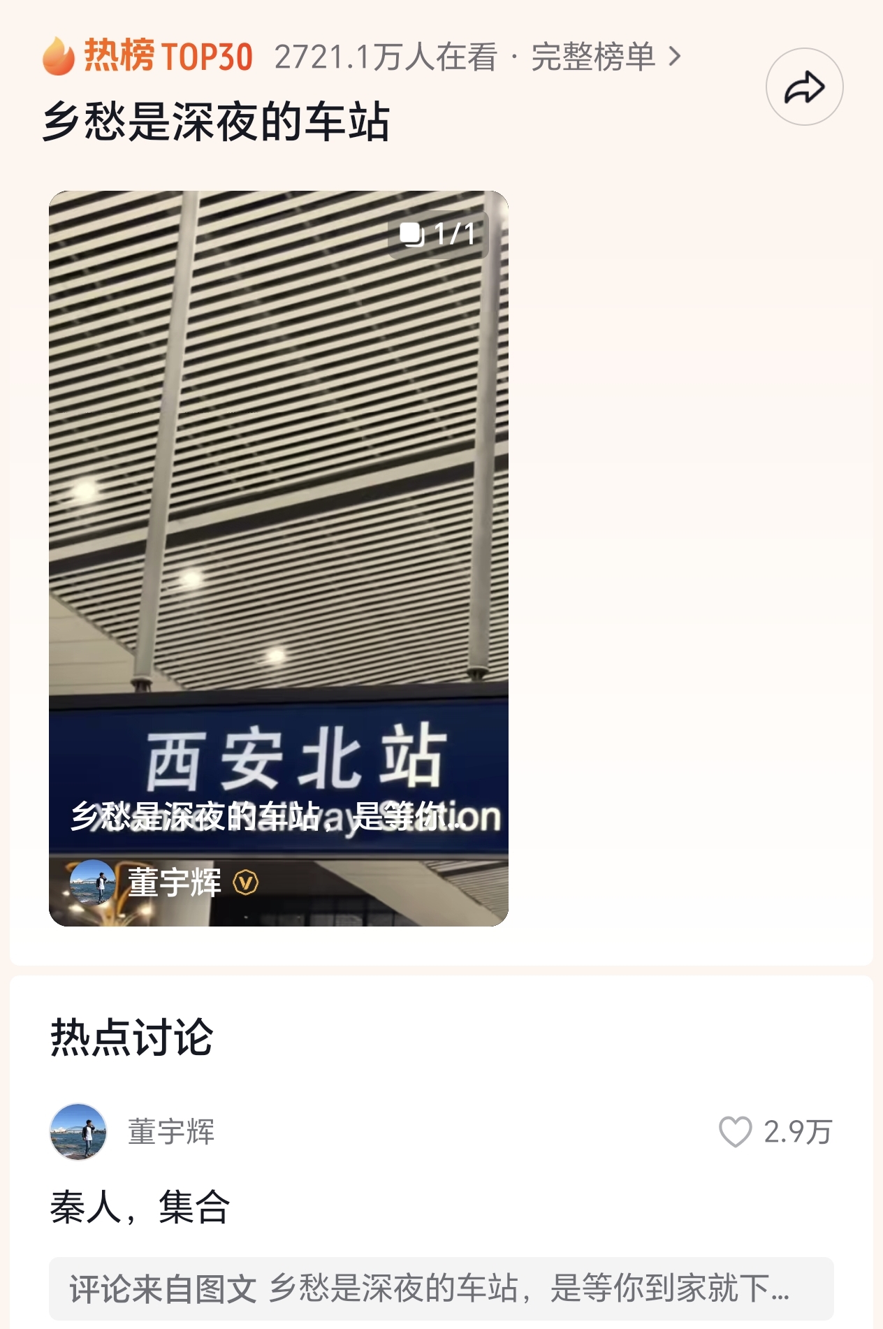 宇辉也还在评论区里表示“西安北站,是西北人的“山海关”,可见对于像他一样常年在外奔波的西北游子来说,西安北站在西北人心中的地位,真的就是“归家的精神界碑,就像山海关对东北人的“到家信号”一样。”
