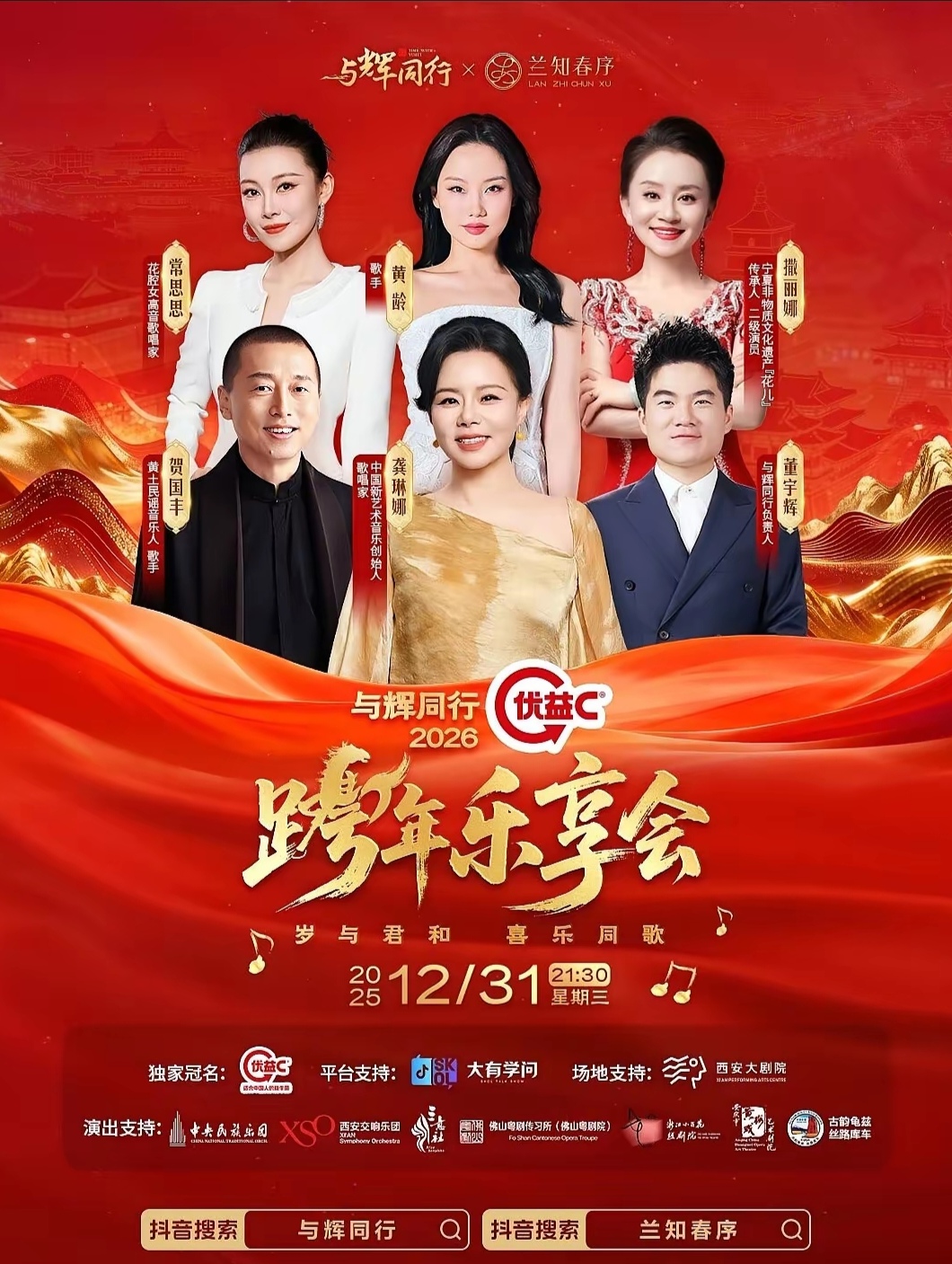 如今虽说距离与辉同行“2026跨年乐享会”正式开播还有几天时间,但却已经进入了未播先火的态势。这点从近几天的“与辉2026跨年乐享会”等话题火热升温就可以看出,先是官宣嘉宾阵容的当天就冲上了抖音热榜,然后陕西文旅等官方账号也加入宣传预热阵容。