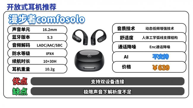 开放式耳机推荐TOP6:漫 步者comfosolo(¥379)