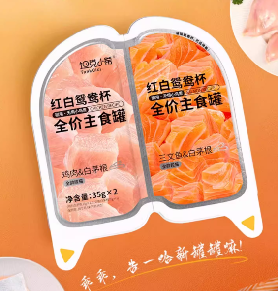 2025猫咪主食罐头测评红黑榜测评:坦克小希是定位为价格亲民的新锐国产品牌,其产品线涵盖主粮、零食和保健食品等,践行“让世界更可爱”的品牌理念。他家红白鸳鸯杯全价主食罐头有三文鱼和鸡肉两种口味,选用冻鸡肉和三文鱼为主要原料,此外还添加了冻鸡内脏等肉类成分;特别添加了白茅根粉,官方介绍这种成分可以呵护猫咪泌尿系统;每罐含有鸡油、亚麻籽粉和丝兰粉,无淀粉、胶质和诱食剂。每罐70克,一杯35克,通常一顿一杯,无需二次保存。