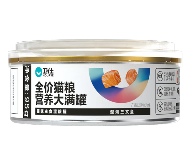2025猫咪主食罐头测评红黑榜测评:卫仕是上海宠幸自主创立的宠物健康食品品牌,秉承“让爱宠相伴的幸福更长久”的品牌使命,研发了犬猫营养品系列、主粮系列、零食系列等多品类产品线。卫仕全价猫粮营养大满罐有牛肉味、鸡肉味、三文鱼味3种选择,其中鸡肉罐是单一肉源以纯肉为主要原料,添加了内脏、骨骼以及矿物微量元素;其他两个口味的配方设计与鸡肉味相似,只是由多种肉源组合且肉汤占比较多。净含量为95 g,罐身设计简洁大方。