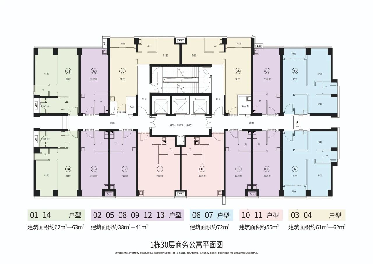约38-63㎡多种户型,最多5.4m大面宽设计;