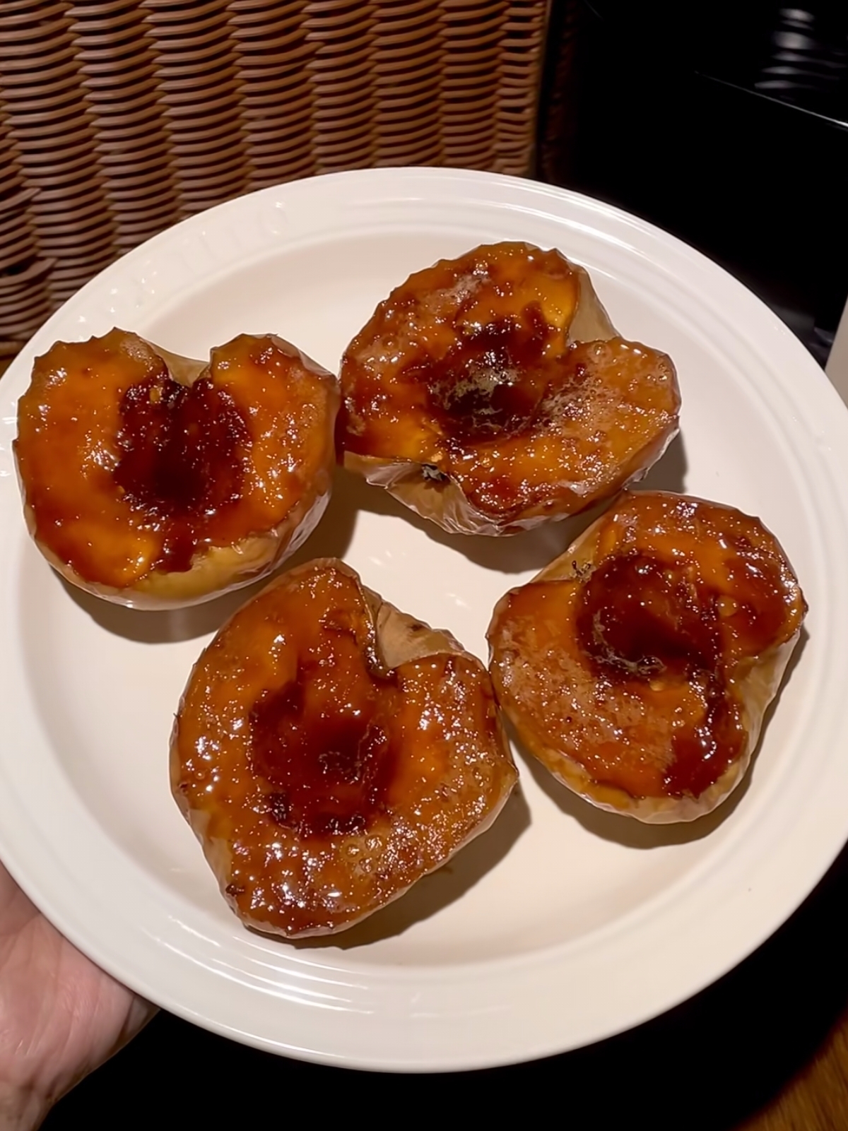 刚出炉的烤苹果,热气腾腾,香气四溢。用勺子轻轻挖开,软糯的果肉几乎要融化在口中,酸甜的汁水混合着黄油的奶香和肉桂的独特风味,每一口都是满满的幸福感。苹果皮经过烘烤也变得软糯可口。无论是作为下午茶点心,还是晚餐后的甜品,这份家常烤苹果都能带来简单而纯粹的快乐。