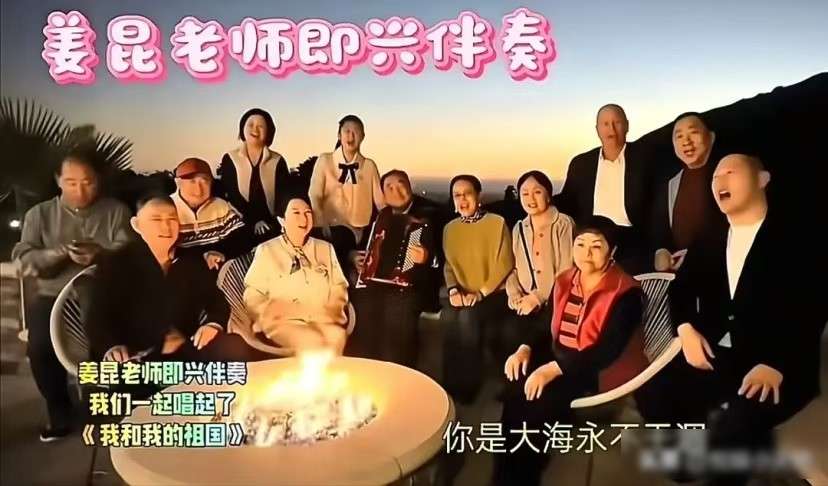 2025年12月24号晚上,75岁的姜昆在美国加州自己家的天台上办了一场小型聚会,他拉起风琴,带着一群华裔中老年朋友一起唱《我和我的祖国》,视频传到网上之后,很多人表示不满,现场还有一个戴红帽子的人,看起来像是董浩,正拿着手机拍摄视频,姜昆夫妇站在人群中间,显得很突出。