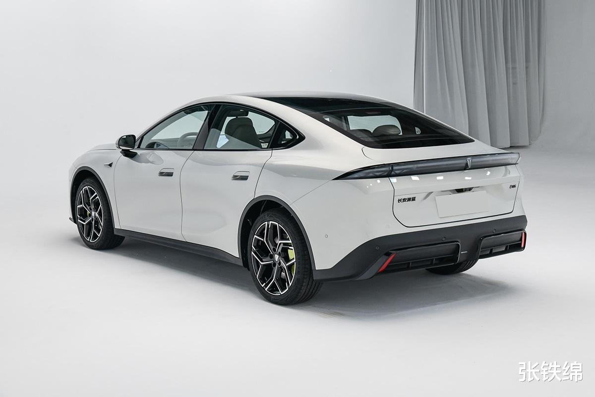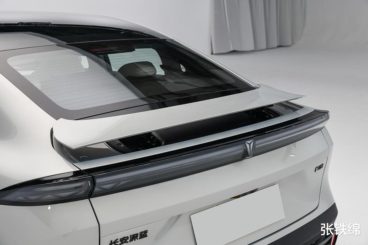车尾部分,尾灯位于后尾箱盖转角位置,贯穿式的造型还让其形成了扰流造型,熏黑效果看上去很运动,在后尾箱盖上还提供了电动升级尾翼。车身尺寸方面,其长宽高分别为4830/1905/1480毫米,轴距为2900毫米。