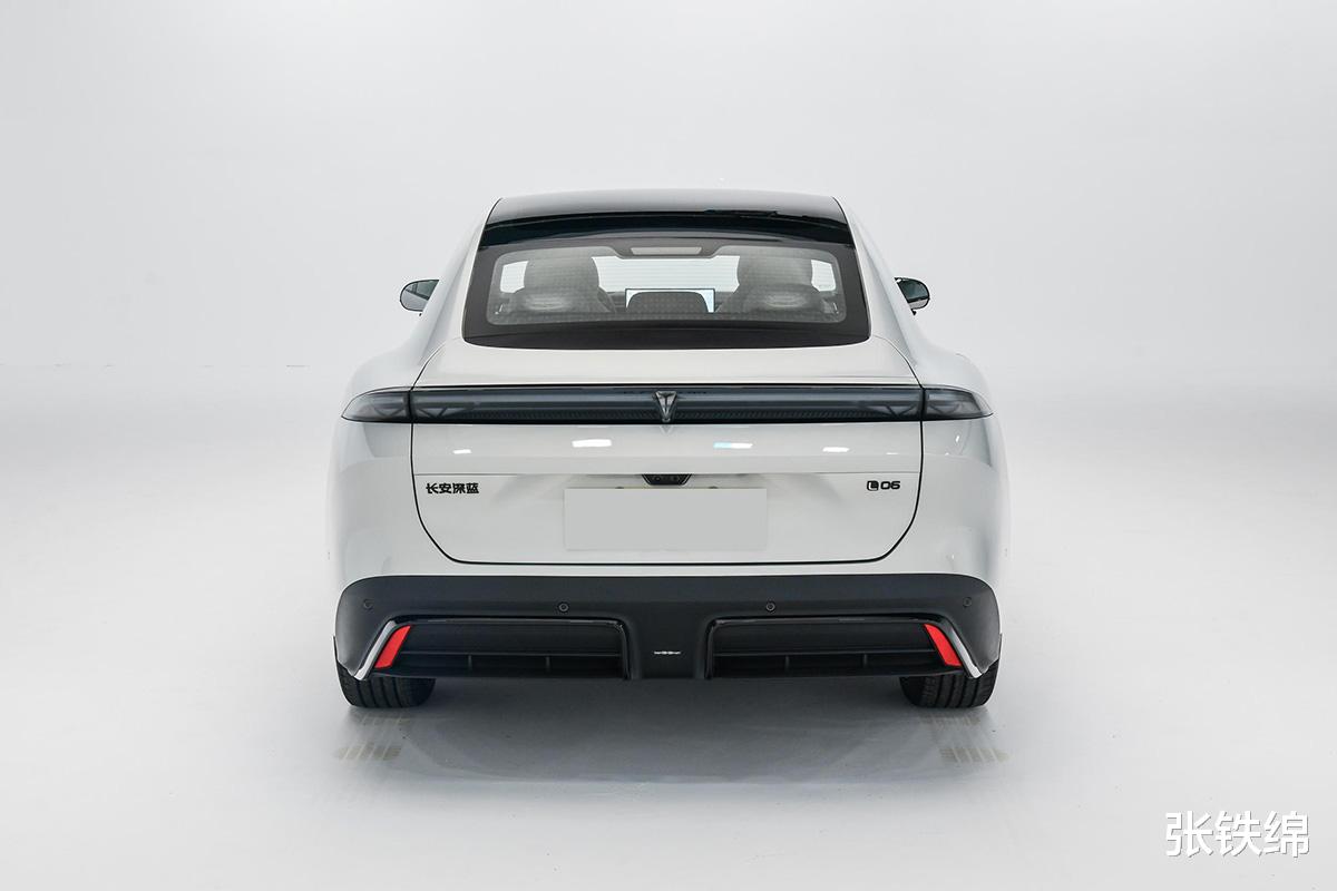 外观部分,这辆全新深蓝L06的前脸使用了最新的设计语言,轿跑式的扁平化造型视觉效果很年轻运动。大灯为分体式设计,上部灯组使用了竖向的四边形轮廓,下部是L形灯组,上下灯组内的三条灯带呈现三叉星效果,点亮后有着很高的辨识度。