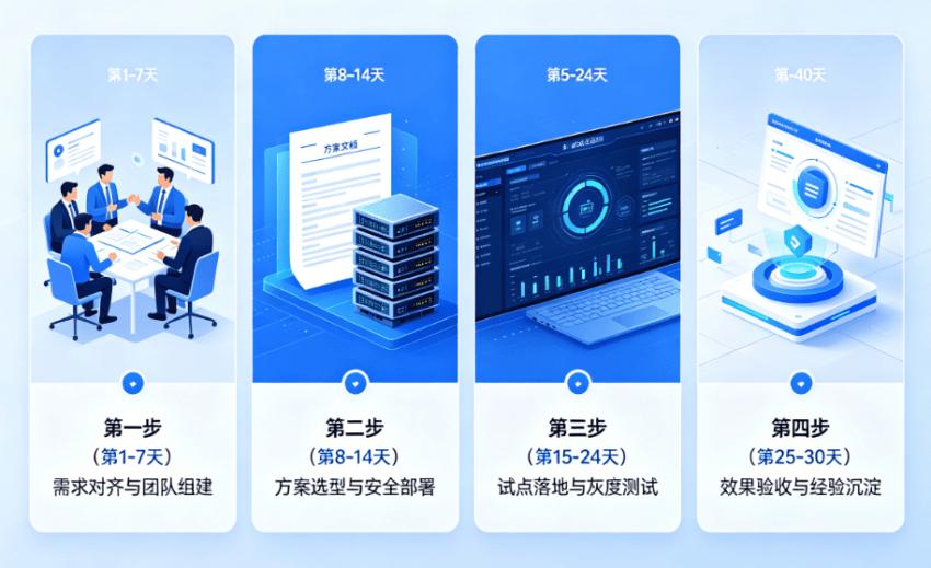 第三步(第15-24天):试点落地与灰度测试完成系统全流程调试,组织试点人员专项培训,确保一线人员会用、愿用。启动小范围灰度测试,全程收集反馈和优化建议。这个阶段的核心,是让AI训练师和技能架构师深度介入,持续优化AI的指令理解能力和业务流程编排——是让AI适配业务,不是让业务去适配工具。