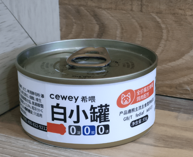 口碑好的主食罐头选择:希喂主食罐头有金枪鱼和鸽肉两种口味,均选用新鲜且来源清晰的肉类作为核心肉源:鸽肉罐是整鸽、金枪鱼是金枪鱼。两种口味都搭配鸡胸肉,这3种肉不仅是猫咪爱吃的肉,还易消化,罐头的消化率高达97.57%,有助于猫咪长肉发腮。此外还添加了鸡肝、鸡脆骨等动物成分,肉含量高达96%,且无谷物和谷类,碳水化合物极低。