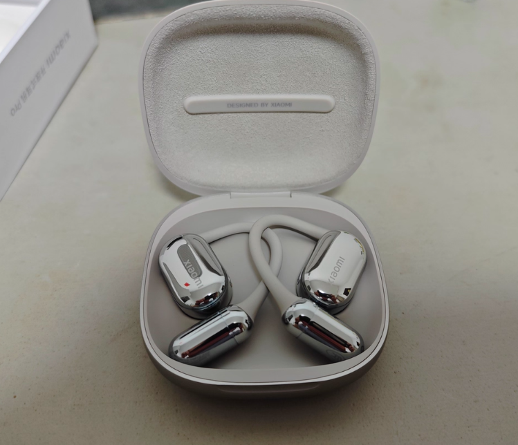 佩戴:耳挂是液态硅胶材质,还加了镍钛记忆合金支架,能自然贴合耳后的曲线,戴眼镜也完全不硌耳朵同时和镜腿也互不干扰。单耳重量很轻,戴5个小时也不会有压痕,耳后也不磨。我试过挤地铁和快走,它都很稳,不会晃来晃去,也不会掉落。