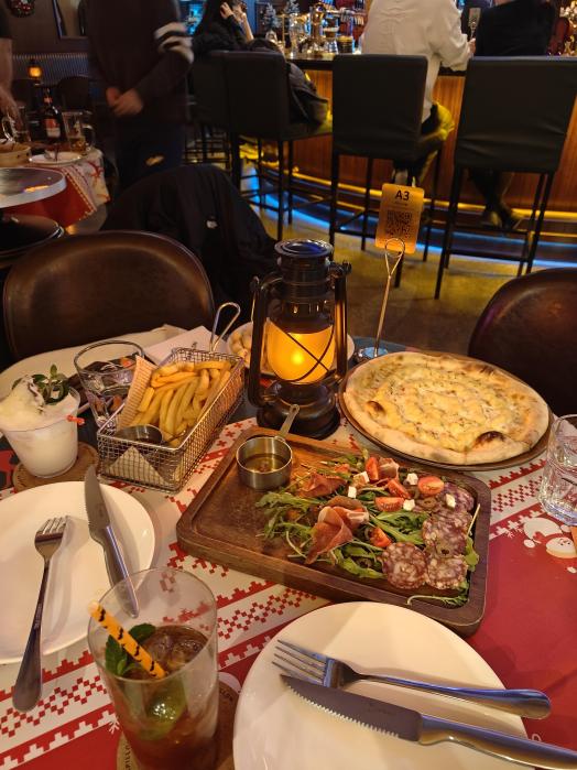 商场里的海景餐吧,靠海位能看港湾夜景,灯光柔和。主打北欧薄底披萨,也有鸡尾酒,适合晚餐后小酌,氛围感拉满。