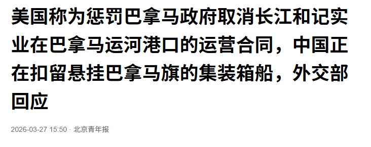 《外交部:美方对巴拿马港口问题一再说三道四,暴露自身霸占运河的图谋》2026-03-27 澎湃新闻