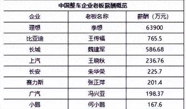 此外,比亚迪董事长王传福年薪765.5万元、长城汽车董事长魏建军全年薪酬568.56 万元。吉利李书福年薪37.6万元。