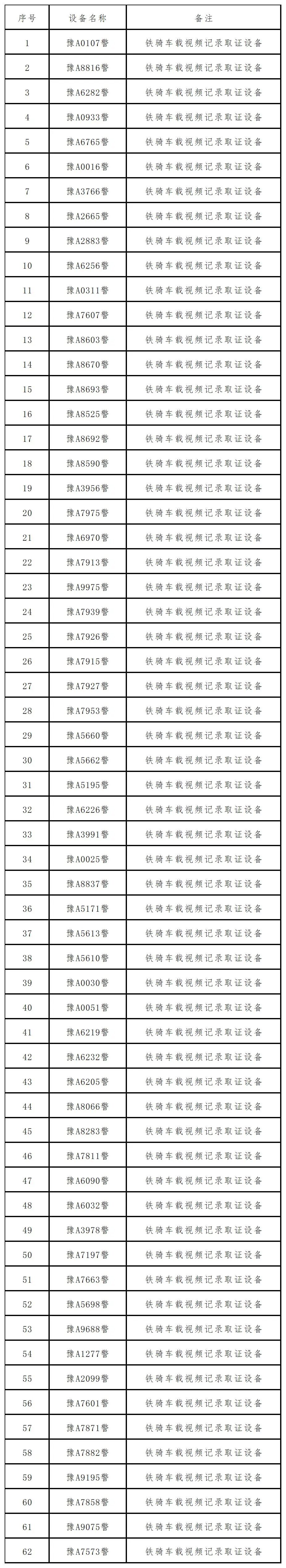 新增铁骑车载视频记录取证设备信息公示