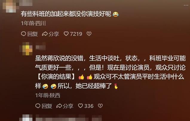 他们希望看到更多像蒋欣这样的实力派演员,能够得到应有的认可和尊重。