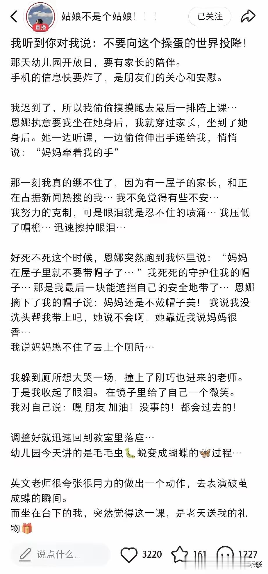 4月11日凌晨刚发长文,塑造“破茧成蝶、为母则刚”的形象,当天下午就借着热度开启直播带货,把舆论流量直接变现 。