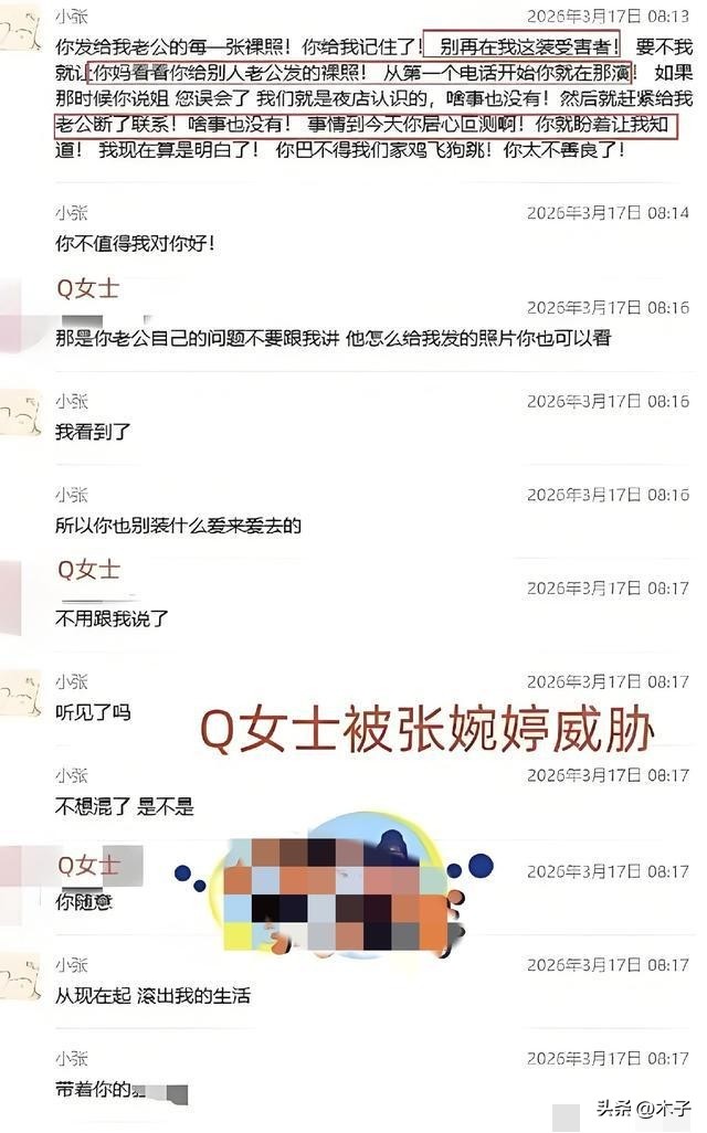 从曝光的聊天记录能清晰看到,早在2026年3月,Q女士就已经知晓宋宁峰并未离婚,张婉婷也早已察觉两人的私情。